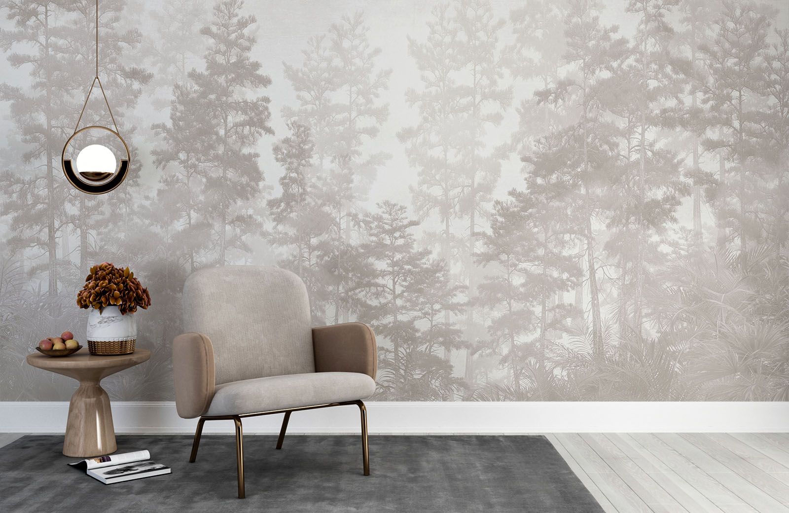 Misty Beige Pine Forest