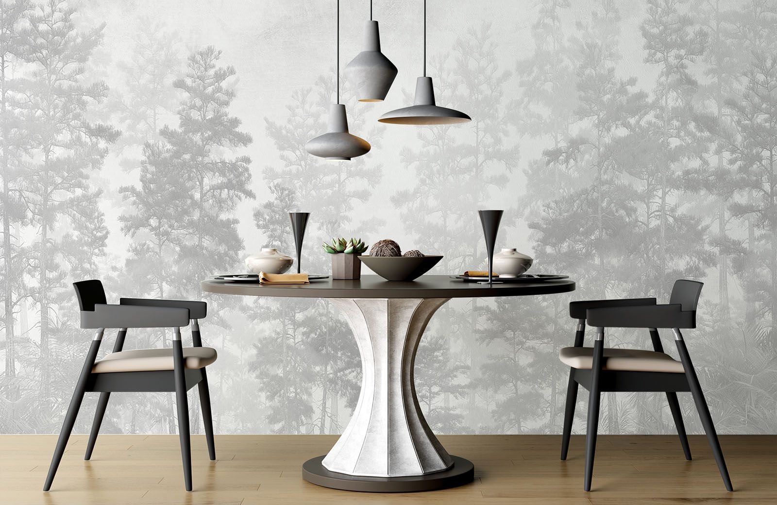 Misty Grey Pine Forest