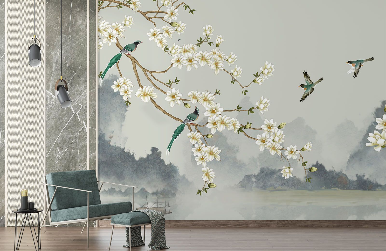 Magnolia Birds Scene