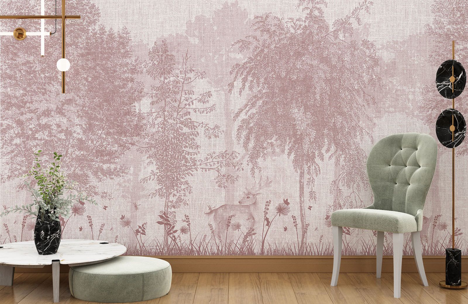 Pink Forest Deer Scene