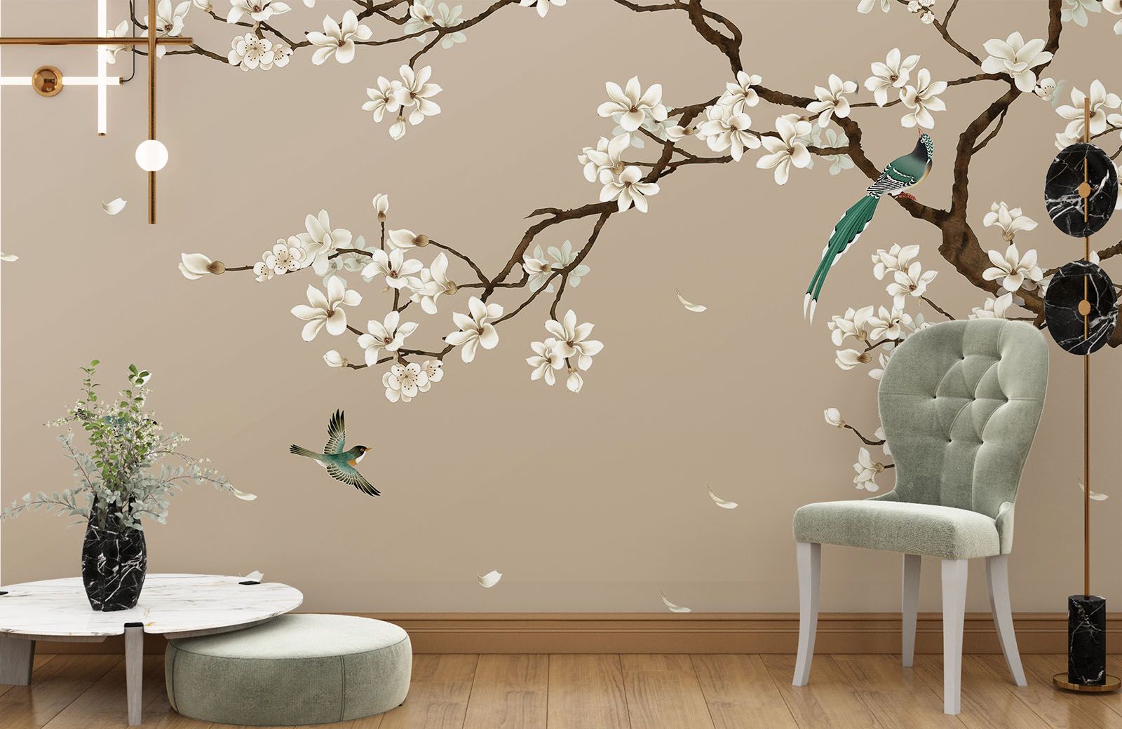 Beige Branch Birds